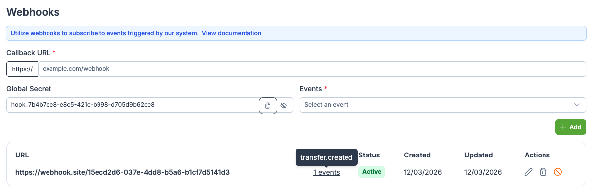 - Initiate a Bank Transfer Test: Use the sample JSON data to trigger a bank transfer. Make sure to replace any dynamic fields, if required.