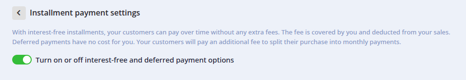 Turn on/off interest-free and deferred payments