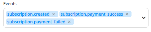 url(string, required): The URL of your server where you'll receive notificationsevents(array, required): List of events you want to receive